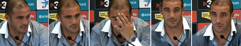 El uruguayo lo pasó muy mal en una rueda de prensa en Cornellá