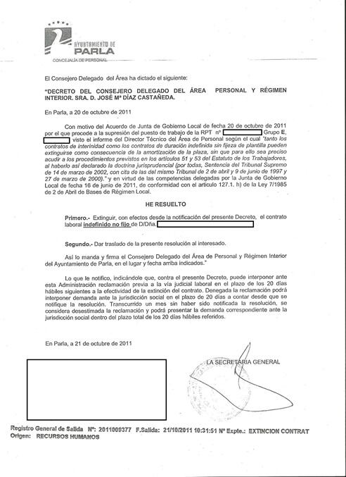 El Ayuntamiento de Parla empieza a entregar las primeras cartas de despido a trabajadores municipales