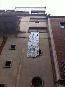 En la mañana de este jueves saltaban las alarmas de una posible 'okupación' del Teatro Albéniz cuando, en la fachada del edificio contiguo, aparecía una pancarta que rezaba: "Espacio liberado desde septiembre. Aquí viven familias desahuciadas y gente sin techo". Sin embargo, los 'okupas' emitían un comunicado con tres puntos: Se han bloqueado los accesos al Teatro para "salvaguardar el contenido"; no tienen nada que ver con el movimiento 15-M ni con los habitantes del Hotel Madrid pero sí se coordinarán con ellos para actuar como vigilantes "ante posibles intentos de entrada o expolio del mismo".