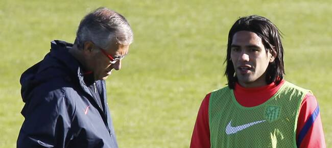 Manzano charla con Falcao durante un entrenamiento