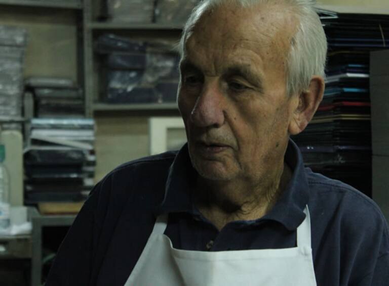 Julio Muñoz Sánchez ha cumplido esta semana 84 años, pero sigue trabajando como encuadernador.