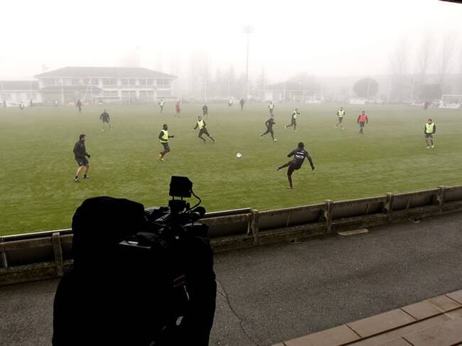 Un cámara de televisión toma imágenes en las instalaciones de Tajonar durante un entrenamiento de Osasuna(EFE)