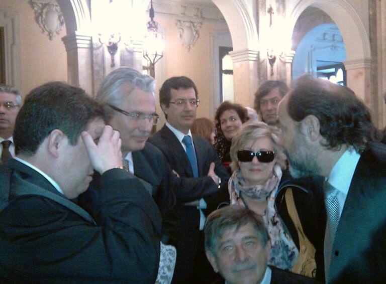 Garzón, a las puertas de la sala junto a varios abogados que han investigado causas por crímenes de lesa humanidad
