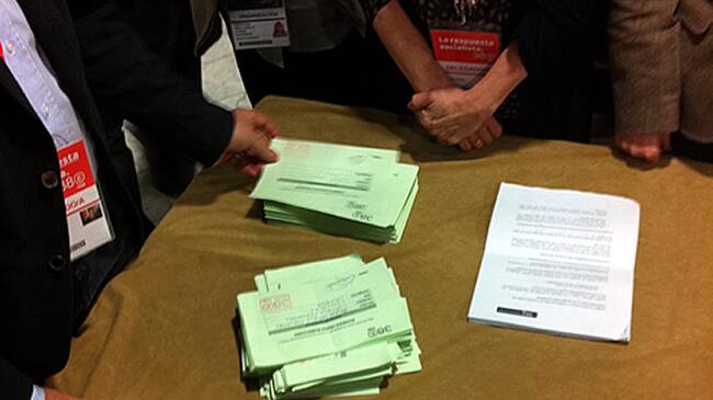 Los avales, recogidos en medio folio de color verde y con un sello rojo, han sido validados y posteriormente se ha procedido al sorteo para designar el orden de intervención de Chacón y Rubalcaba ante el pleno. En primer lugar hablará Alfredo Pérez Rubalcaba y después Carme Chacón.