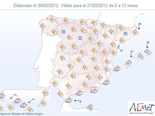 Mapa del tiempo para el martes 21 de febrero(AEMET)