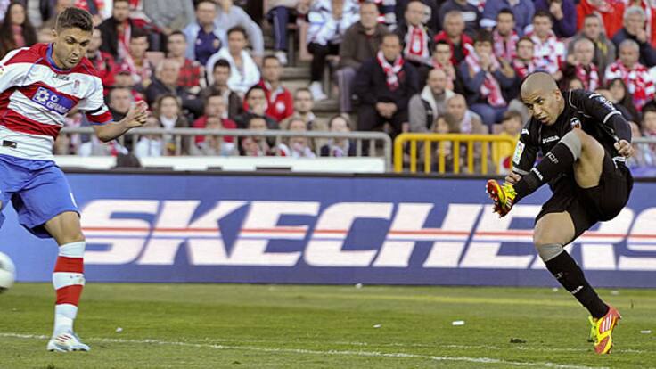 El Valencia, tras más de tres meses sin ganar como visitante, puso fin a un mal inicio de año con su segunda victoria en 2012 y se impuso al Granada CF, que acumula dos derrotas seguidas