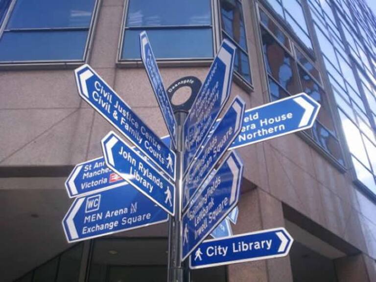 Señal del centro de Manchester donde se concentran los aficionados del Athletic