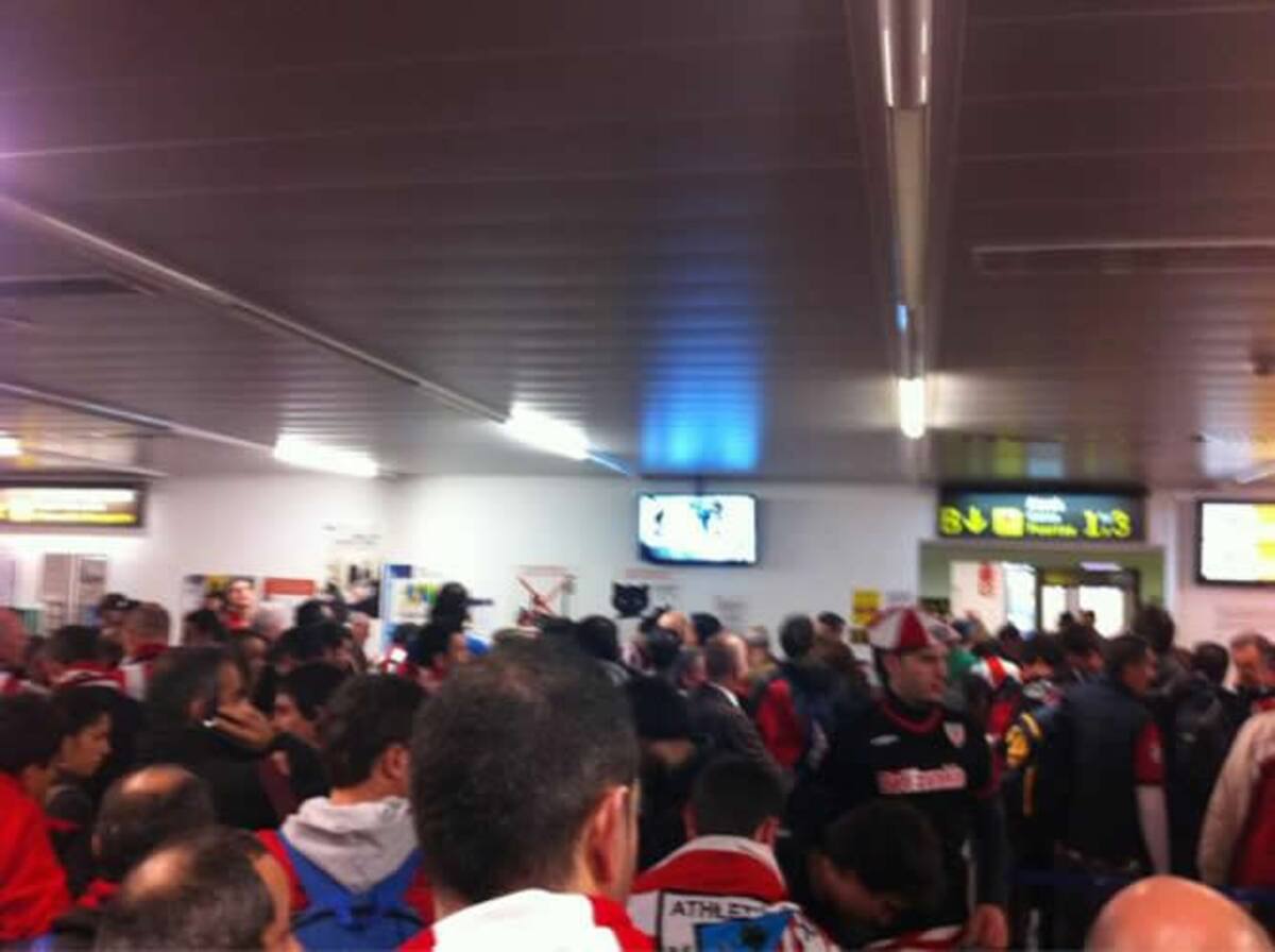 El aeropuerto de Bilbao, lleno de camisetas rojas y blancas del Athletic