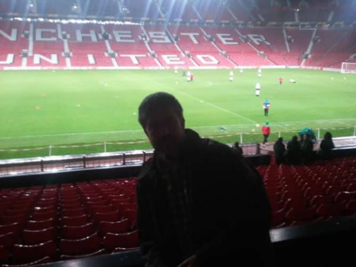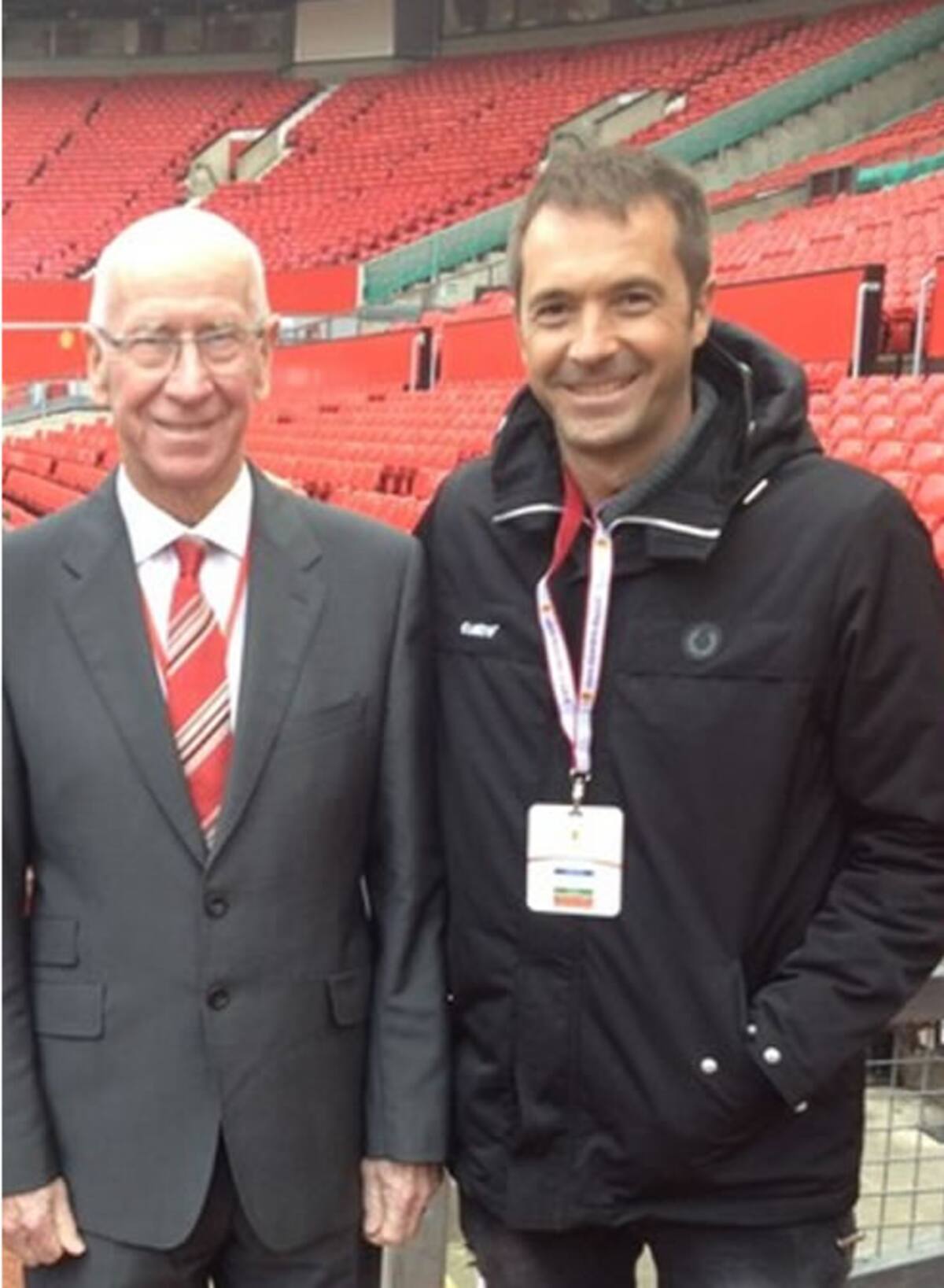 Manu Carreño, en Old Trafford junto a Bobby Charlton