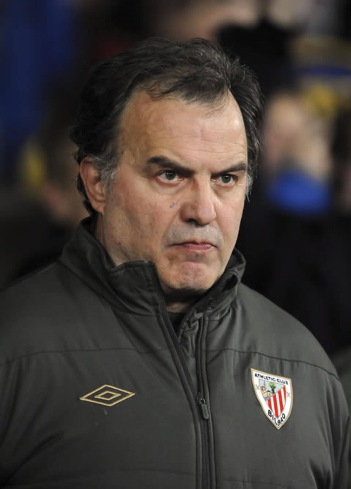 El entrenador argentino del Athletic de Bilbao, Marcelo Bielsa, durante el partido de ida de los octavos de final de la Liga Europa contra el Manchester United