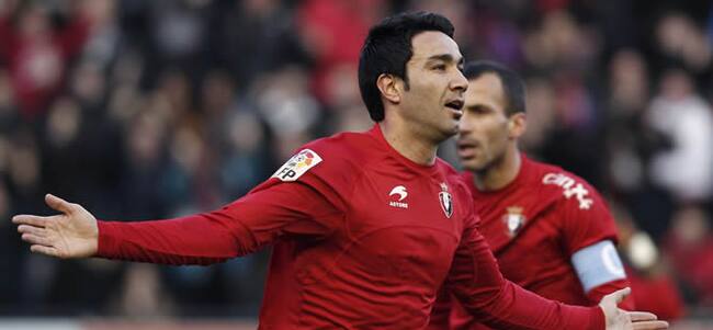 El centrocampista iraní de Osasuna Javad Nekounam celebra su gol, primero de su equipo, durante el partido(EFE)