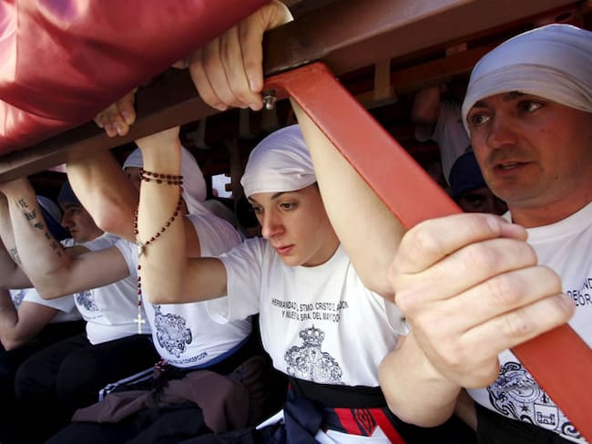 Costaleros de la Cofradía del Cristo del Abandono y la Virgen del Mayor Dolor de la Línea de la Concepción (EFE)