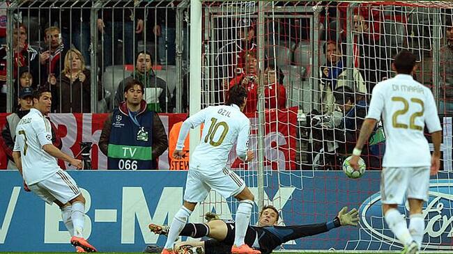 Özil anota el gol del empate 1-1 ante el portero del Bayern Múnich Manuel Neuer(EFE)