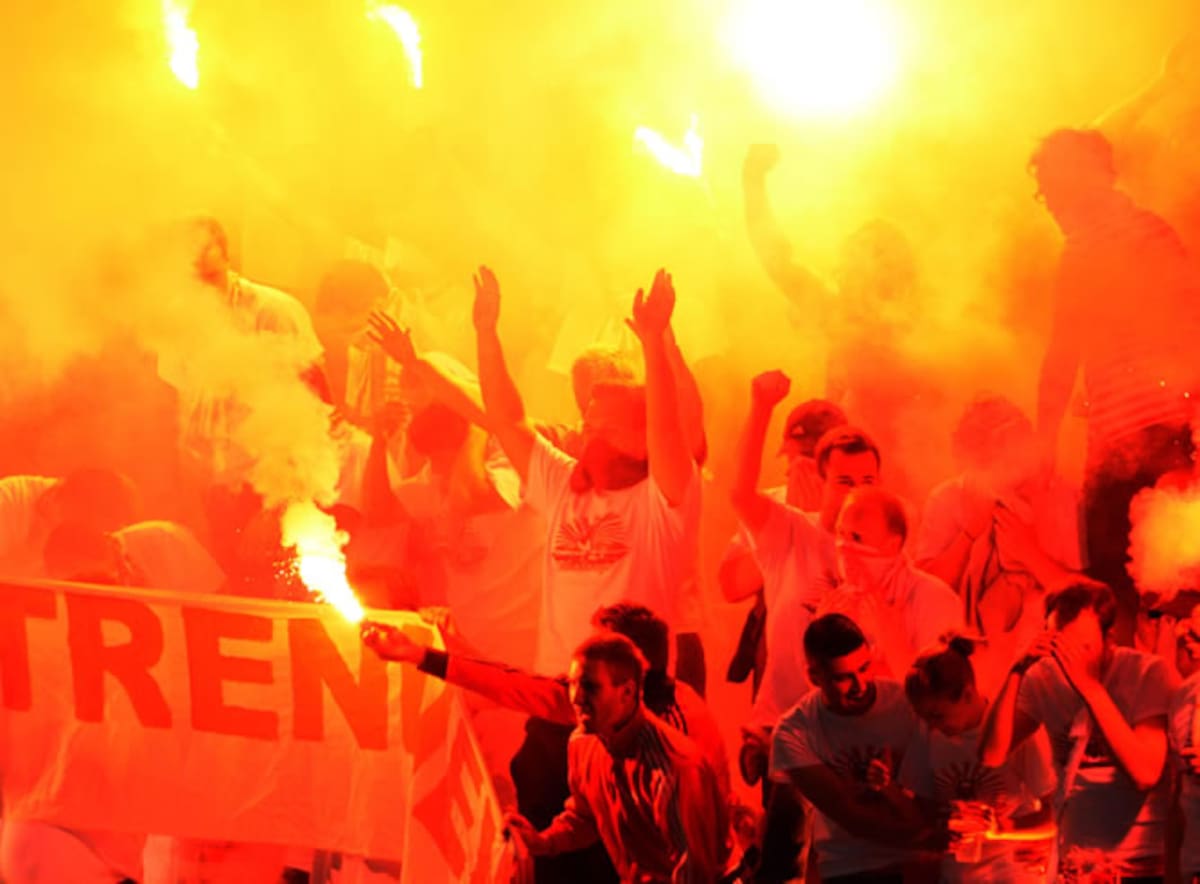 Aficionados del Bayern encienden bengalas en el Allianz Arena
