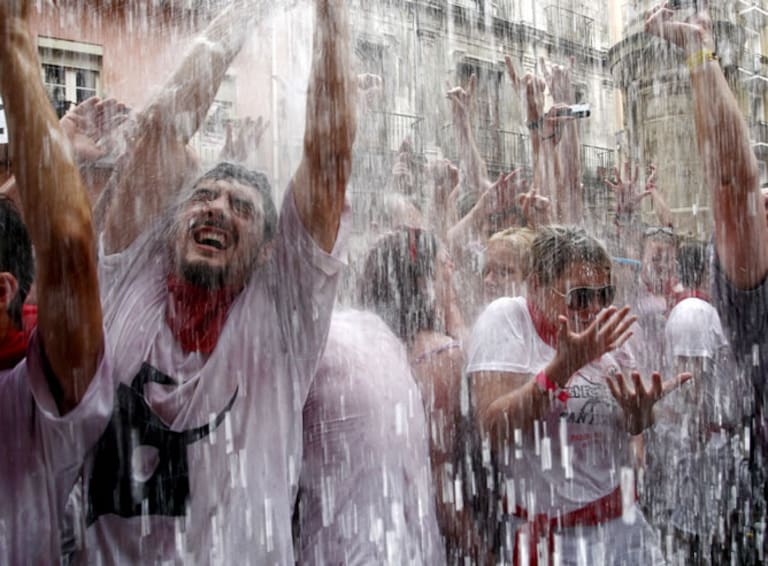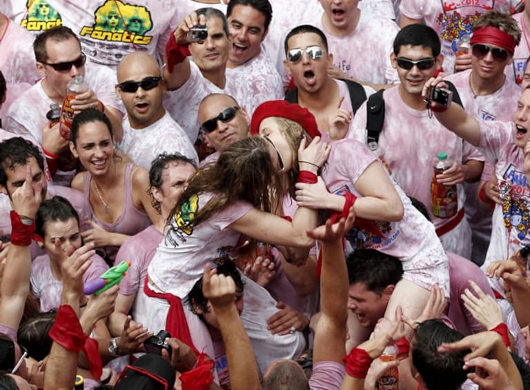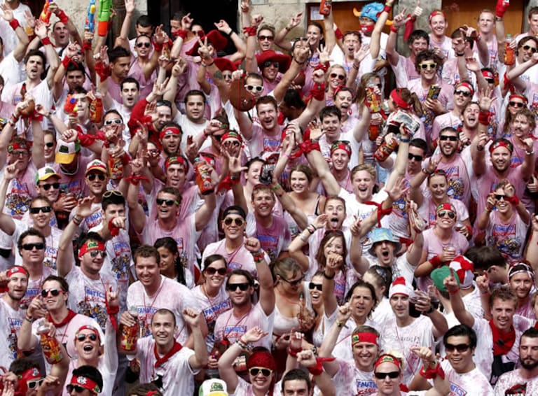 Jóvenes celebrando el inicio de San Fermín