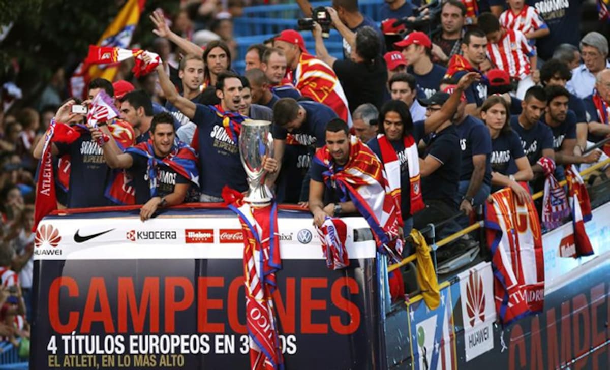 Los jugadores del Atlético, en el autobús de los campeones