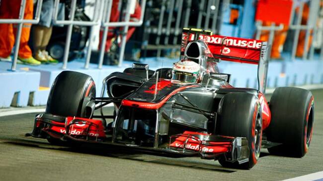 El piloto inglés Lewis Hamilton de McLaren Mercedes durante los entrenamientos libres del GP de Singapur, en el circuito nocturno de Marina Bay(EFE)
