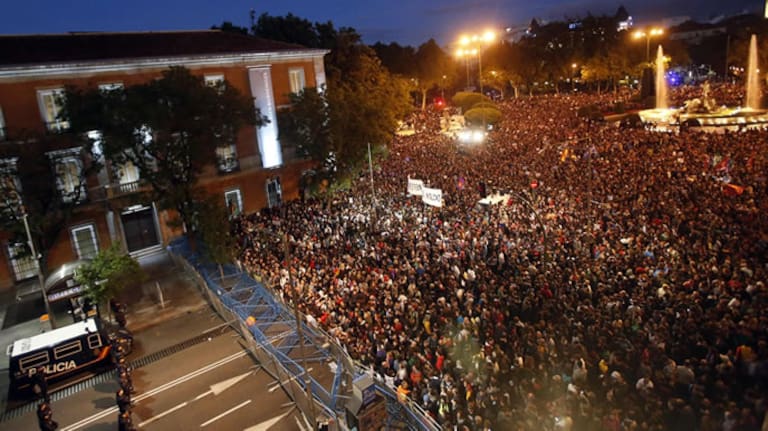 Vista de la plaza de Neptuno de Madrid donde gran número de personas se han congregado convocados por la Coordinadora 25S.