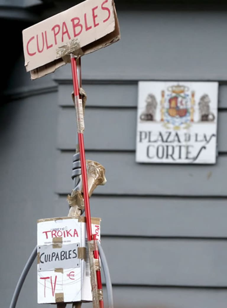 Imágenes de las pancartas en la concentración junto al Congreso de los Diputados .