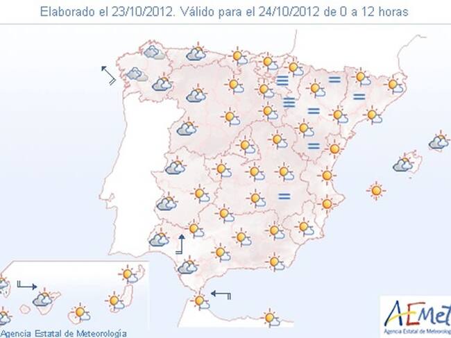 Previsión del tiempo para el miércoles 24 de octubre(AEMET)