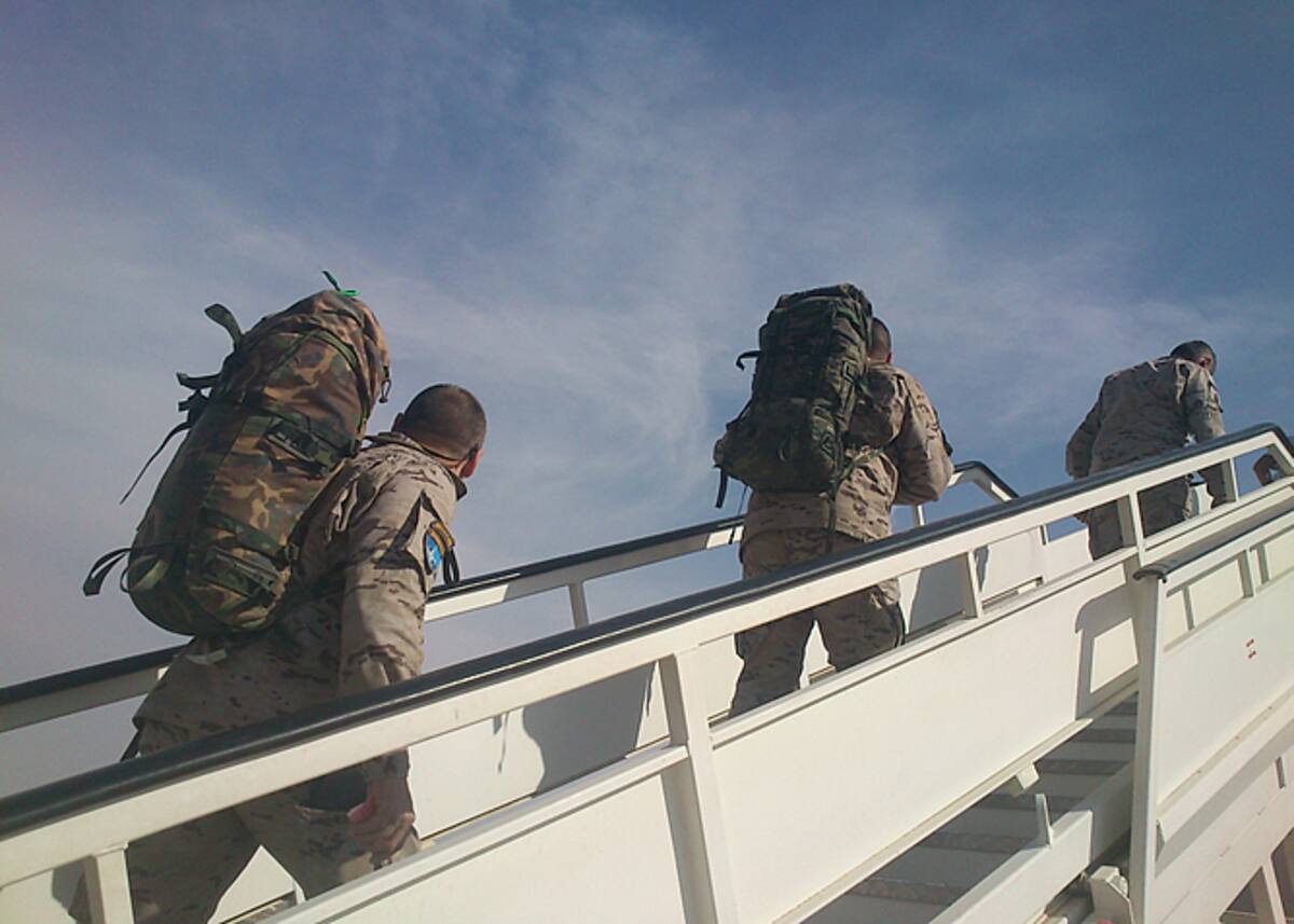 Los soldados no echarán de menos las reciones de campaña. Pasan los últimos minutos comentando que es lo que cenarán cuando lleguen a casa