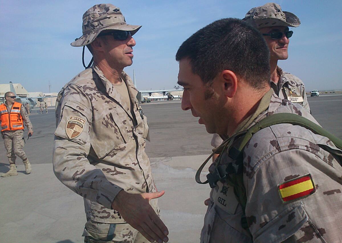 Los mandos saludan a los efectivos de la Brigada Aerotransportable que llegan para relevar a los de la Brigada Paracaidista
