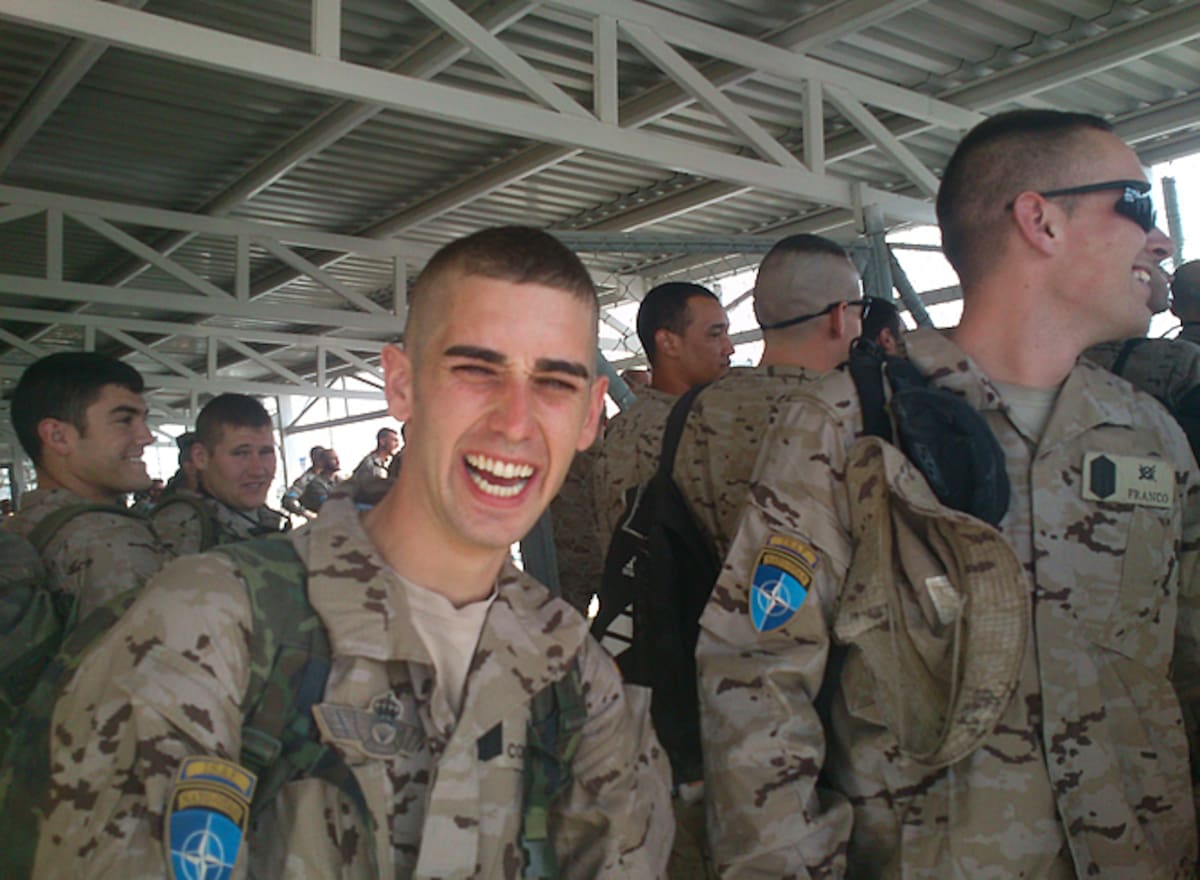 "No estoy contento... estoy lo siguiente", dice este soldado a punto de embarcar
