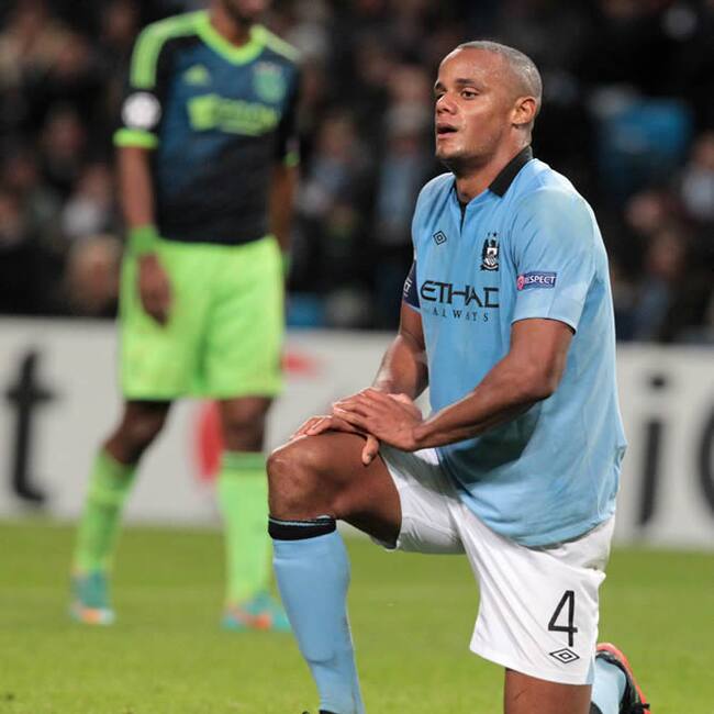 El jugador del Manchester City Vincent Kompany este martes 6 de noviembre de 2012, en el partido de la Liga de Campeones de la UEFA ante el Ajax en el estadio Etihad de Manchester