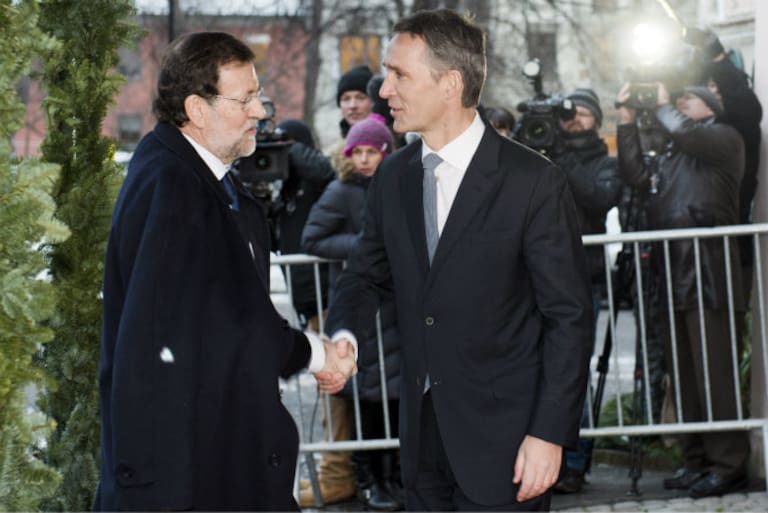El presidente del gobierno español, Mariano Rajoy, es recibido por primer ministro noruego, Jens Stoltenberg