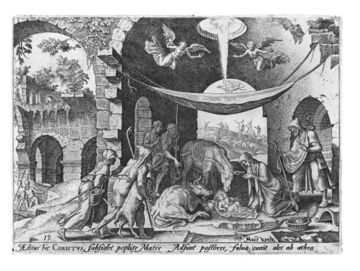 Los Reyes han escogido felicitar la Navidad con una reproducción de 'La Adoración de los pastores', perteneciente a la colección de grabados que se conserva en la Real Biblioteca del Monasterio de San Lorenzo de El Escorial.