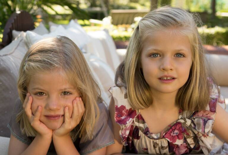 Los príncipes de Asturias han elegido una fotografía de sus hijas Leonor y Sofía, realizada por Cristina García Rodero a principios del mes de agosto en la residencia de los Príncipes de Asturias, perteneciente al juego de fotografías familiares distribui