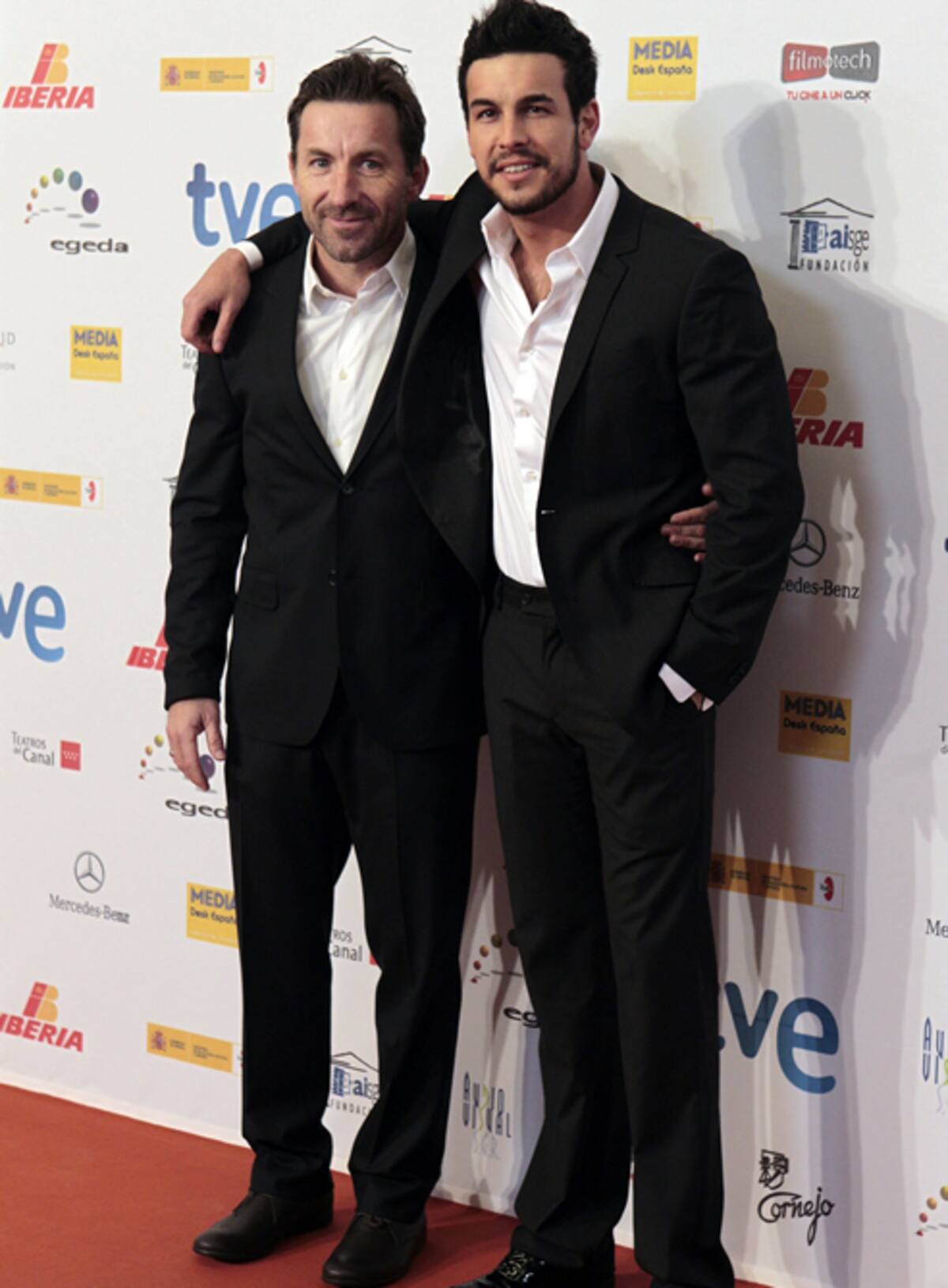 • Antonio de la Torre y Mario Casas, protagonistas de 'Grupo 7' con traje negro y camisa blanca