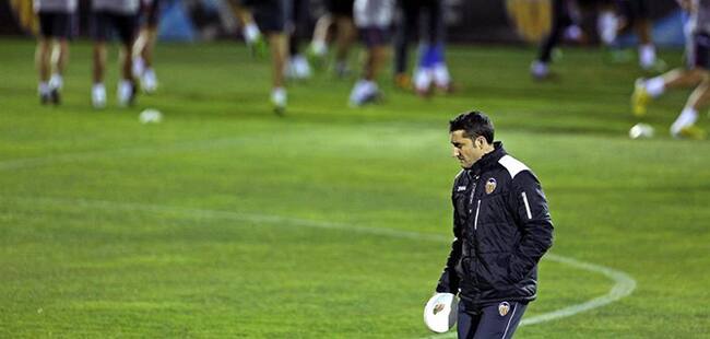 El entrenador del Valencia C.F. Ernesto Valverde, durante el entrenamiento realizado el lunes en la ciudad deportiva del club en la víspera del partido de ida de octavos de final de Liga de Campeones que les enfrenta al Paris Saint Germain en Mestalla.(EFE)