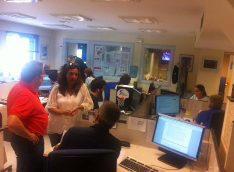 Àngels Barceló, junto a los redactores Adrián Prado e Isabel Quintana