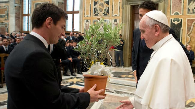Messi ofrece un árbol de olivo al papa Francisco(EFE)