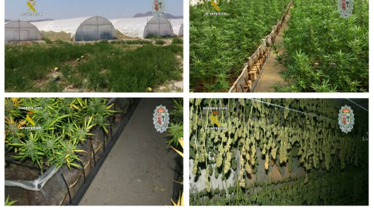 La plantación estaba situada en una amplia zona rural de la localidad de Esparralgal, Murcia. 5.000 metros cuadrados con 4 grandes invernaderos dedicados al cultivo de distintas variedades de cannabis, un secadero y distinta maquinaria para el tratamiento de la droga. La ingente plantación estaba camuflada entre amplias explotaciones agrícolas hortofrutícolas y escondida en casetas agrícolas.