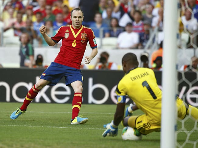 Iniesta tira a puerta en el partido ante Nigeria(Reuters)