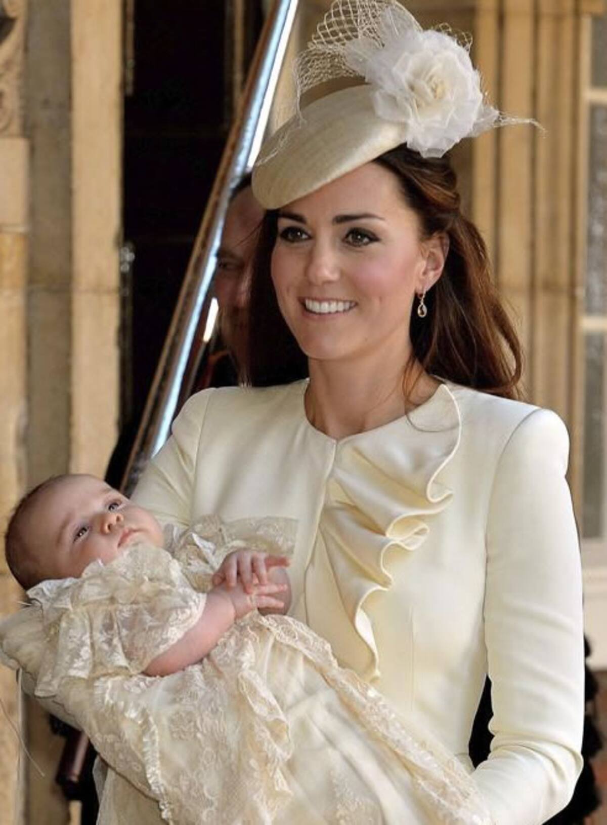 La duquesa de Cambridge, Catalina, durante el bautizo de su primogénito, Jorge, de 3 meses, en la capilla real del Palacio de St. James, en Londres. Los duques de Cambridge, Guillermo y Catalina, han bautizado hoy a su primogénito, Jorge, dejando paso a n