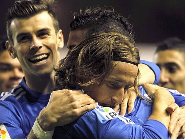 Modric abraza a Cristiano para celebrar uno de los goles del portugués en Vallecas(EFE)