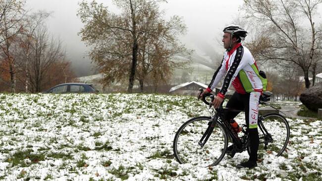 Un ciclista observa la nieve en el alto de Urkiola(EFE/Luis Tejido)