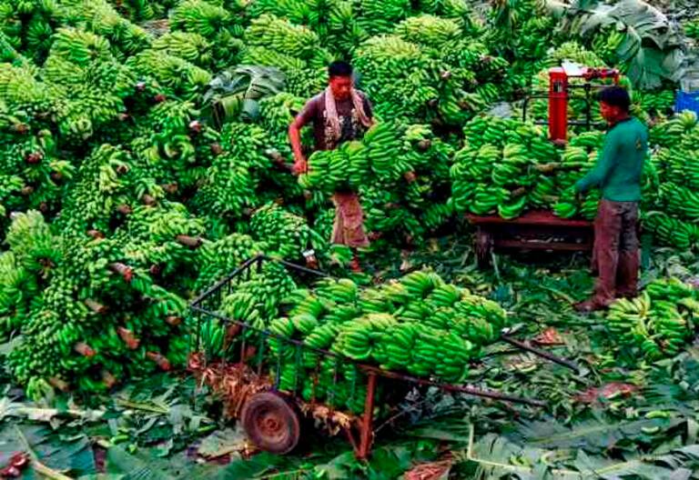 Un grupo de trabajadores carga bananas en el mercado mayorista de Kochi, en el sureste de India, a finales de noviembre.