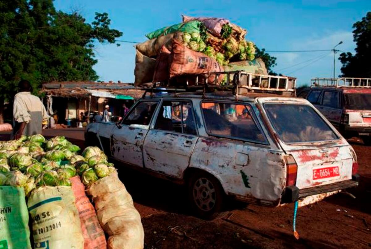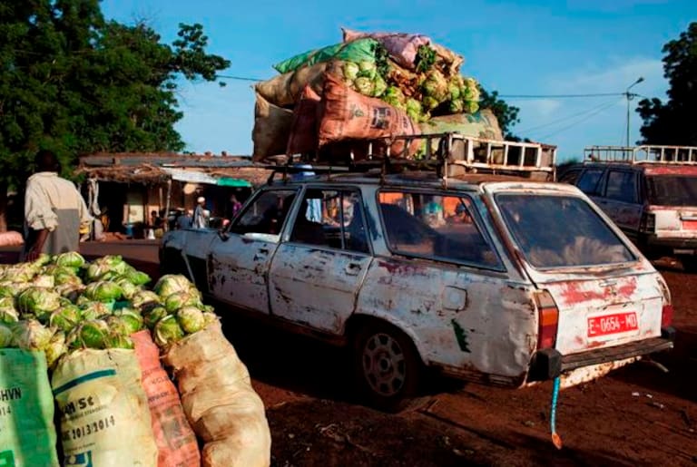 El comercio de coles in Kati (Malí), depende en buena medida de los vehículos Peugeot 504 que circulan por la zona.