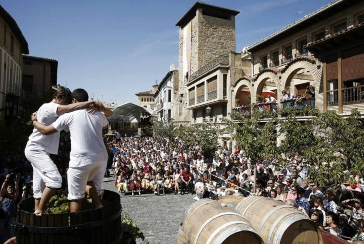 Olite, considerada la capital del vino navarro, celebra cada año "La fiesta de la vendimia", con la tradicional pisada de uvas y la bendición y degustación de los primeros mostos.