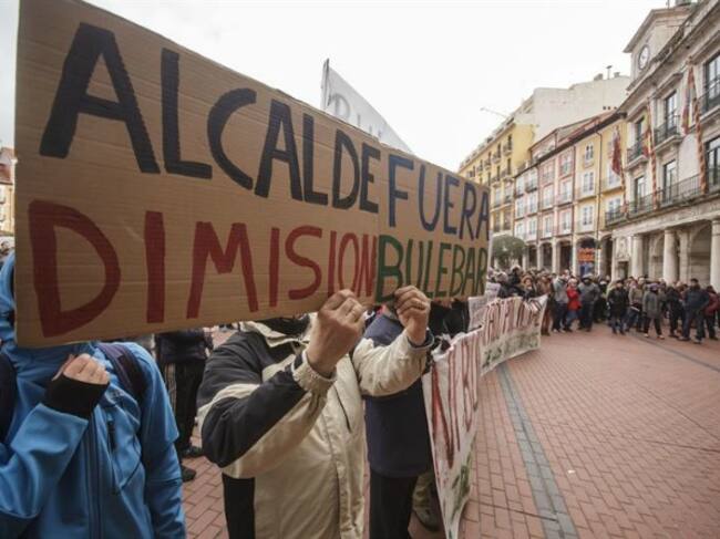 Imagen de la manifestación en la puerta del ayuntamiento de Burgos debido a las obras de la calle Vitoria.(EFE)