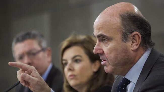 El ministro de Economía y Competitividad, Luis de Guindos, la vicepresidenta del Ejecutivo, Soraya Sáenz de Santamaría y el titular de Justicia, Alberto Ruiz Gallardón(EFE)