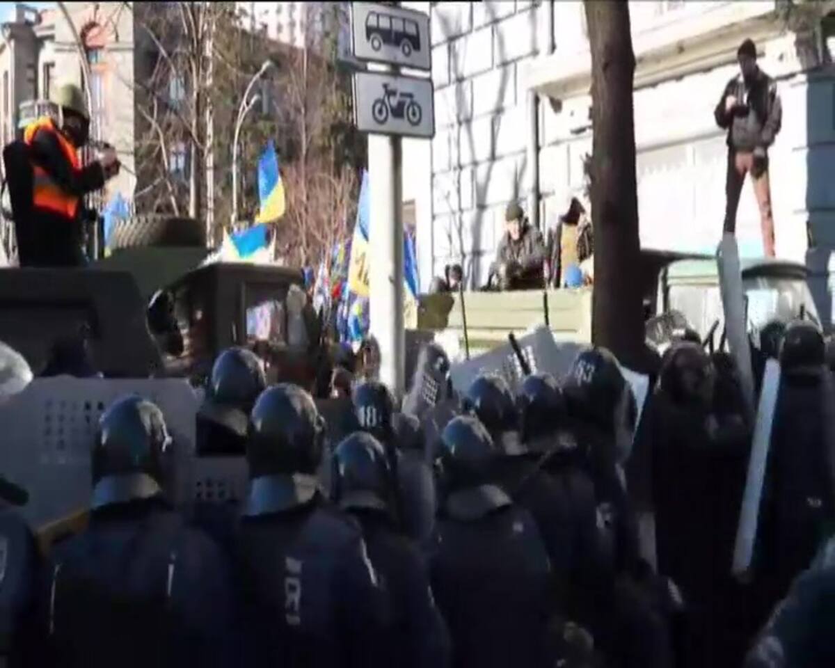 Miles de manifestantes se concentran ante la sede del Parlamento en Kiev tras romper el cordon policial de los antidisturbios