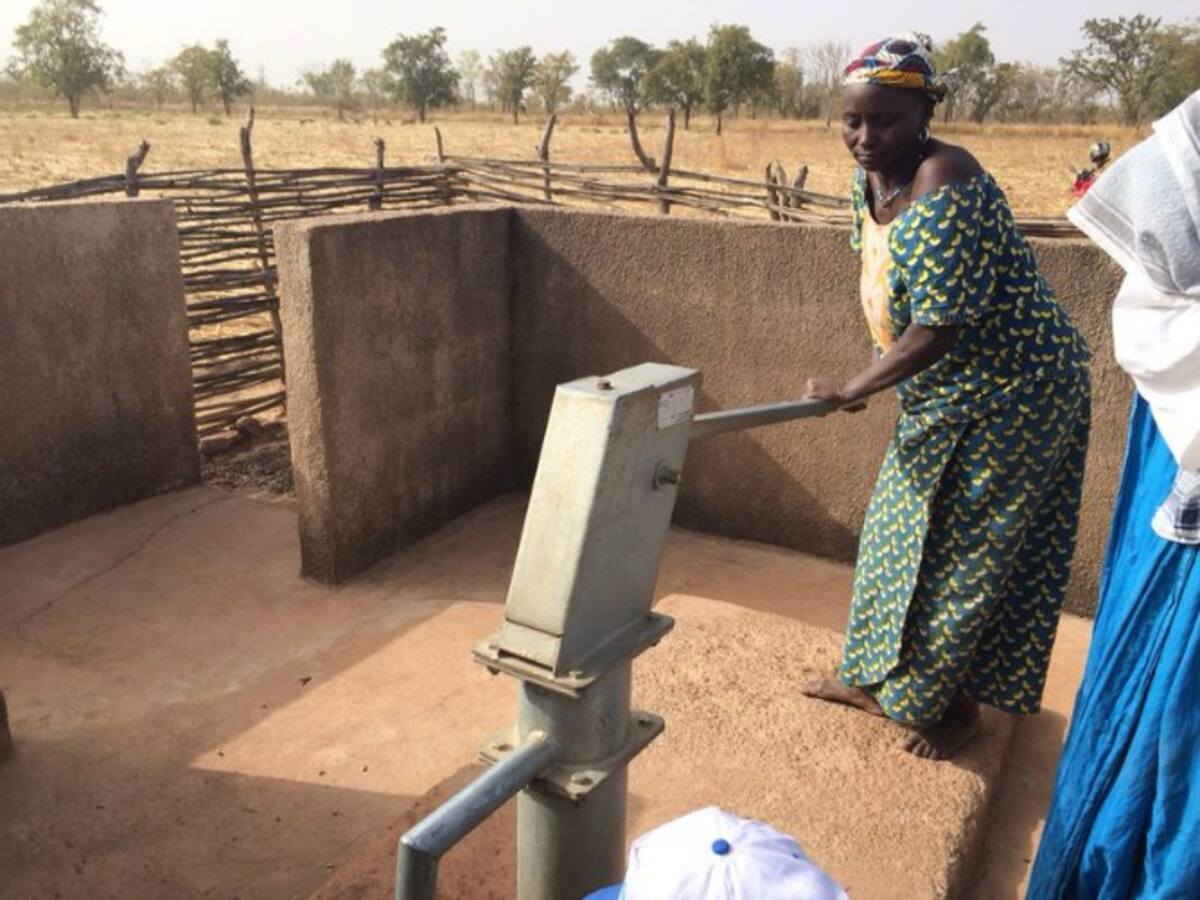• Mujer activando una bomba de agua construida en Fangalacouta por Acción contra el Hambre