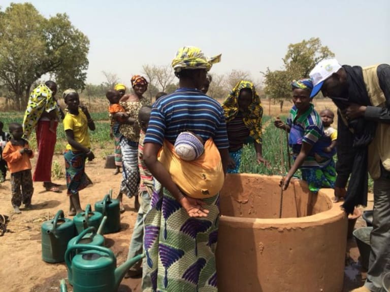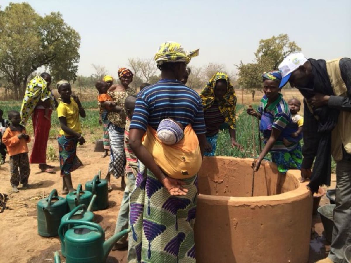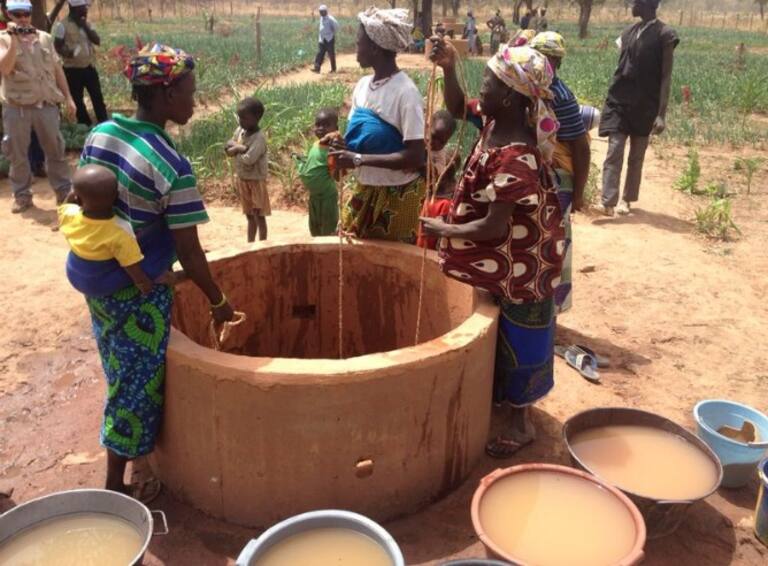 Varias mujeres extraen agua de un pozo en Bamako