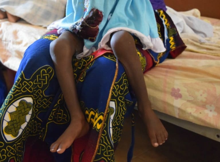 • Aminata junto a su madre en el hospital de Kita. Tiene casi cinco años y pesa cinco kilos