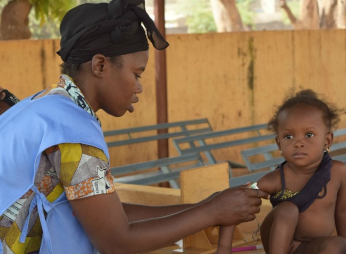 Una niña recibe cuidos médicos en un campamento de Bamako